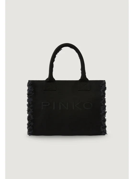 La borsa grande da donna Pinko BEACH SHOPPER CANVAS 106673 A3A4 è realizzata in 100% cotone, garantendo resistenza e morbidezza al tatto. Dal design moderno e raffinato, si distingue per le eleganti finiture sfrangiate sui lati e il logo Pinko ricamato tono su tono sul davanti. I manici robusti la rendono pratica e confortevole da portare sia a mano che sulla spalla, perfetta per accompagnarti nelle giornate al mare, durante lo shopping o in viaggio. L'ampia capienza la rende ideale per trasportare tutto il necessario con stile. La cura nei dettagli e la qualità dei materiali la rendono un accessorio must-have per la donna dinamica e attenta alle tendenze.