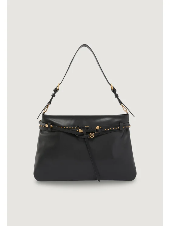 La borsa grande da donna Pinko BELT BAG BIG VITELLO MORBIDO rappresenta l'emblema dell'eleganza e della praticità. Realizzata in 100% pelle di alta qualità, offre una texture morbida e una struttura spaziosa, ideale per contenere tutto il necessario nella vita quotidiana o durante i viaggi. Il design contemporaneo è valorizzato dalla presenza di una cintura decorativa con borchie dorate e dettagli metallici che aggiungono carattere e unicità. La tracolla regolabile consente una portabilità versatile, adattandosi a diversi stili e occasioni. Perfetta per chi desidera un accessorio distintivo, resistente e raffinato, questa borsa è firmata Pinko e si distingue per cura dei dettagli e qualità dei materiali.