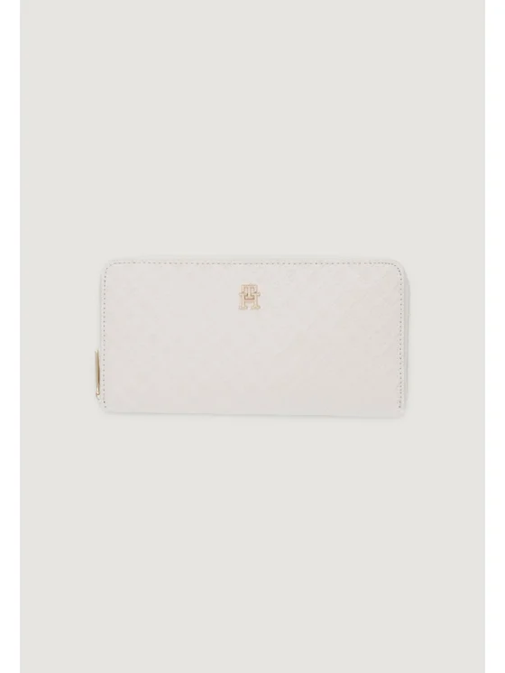 Il portafoglio grande da donna Tommy Hilfiger TH ICON LRG ZA MONO AW0AW18482 rappresenta l'eleganza contemporanea e la praticità quotidiana. Realizzato in 100% poliuretano di alta qualità, questo portafoglio si contraddistingue per la texture con motivo monogramma in rilievo e per il raffinato logo metallico 'TH' sulla parte frontale. La struttura ampia e ben organizzata permette di conservare al meglio carte, banconote e monete, grazie agli scomparti multipli interni e alla chiusura zip che garantisce sicurezza. La cura dei dettagli e il design moderno fanno di questo accessorio la scelta ideale per ogni occasione, sia per l'uso quotidiano sia per completare look sofisticati.