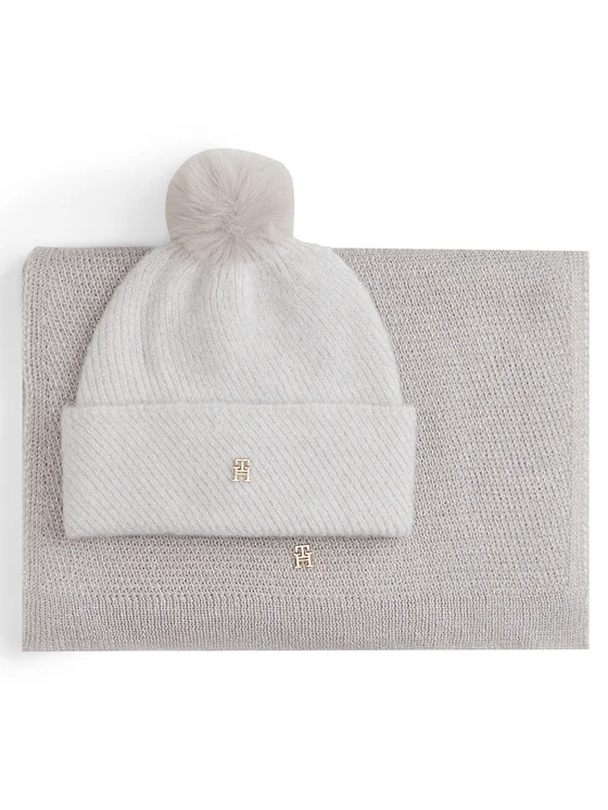 Tommy Hilfiger Set berretto e sciarpa Pom Pom AW0AW17995 Beige