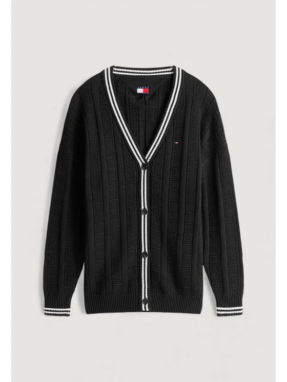 Il cardigan da donna Tommy Hilfiger Jeans DW0DW22026 unisce stile senza tempo e sostenibilità. Realizzato al 100% in cotone rigenerato, questo capo è la scelta ideale per chi cerca qualità e attenzione all’ambiente. Il design presenta una lavorazione a maglia con motivo geometrico in rilievo, abbottonatura frontale e dettagli a contrasto su scollo, polsini e bordo inferiore. Il logo Tommy Hilfiger ricamato sul petto aggiunge un tocco iconico, mentre la vestibilità morbida garantisce comfort e versatilità. Perfetto da indossare nelle mezze stagioni o per completare look casual chic, questo cardigan si distingue per eleganza e praticità.