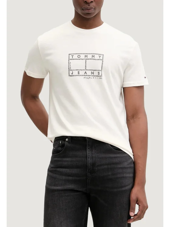 La t-shirt a maniche corte da uomo Tommy Hilfiger Jeans DM0DM22317 è realizzata al 100% in cotone rigenerato, una scelta sostenibile e rispettosa dell'ambiente. Il design presenta una vestibilità classica e confortevole, valorizzata dal logo Tommy Jeans stampato sul petto in stile grafico, che aggiunge un tocco distintivo e moderno. Il girocollo a costine assicura una vestibilità stabile e piacevole sulla pelle. Perfetta per un look casual, questa t-shirt si abbina facilmente a jeans o pantaloni sportivi, ideale per il tempo libero e le occasioni informali.