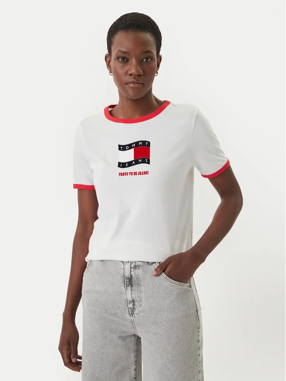 T-shirt Wavy Flag Contrast Ringer DW0DW22306 Bianco Regular Fit
