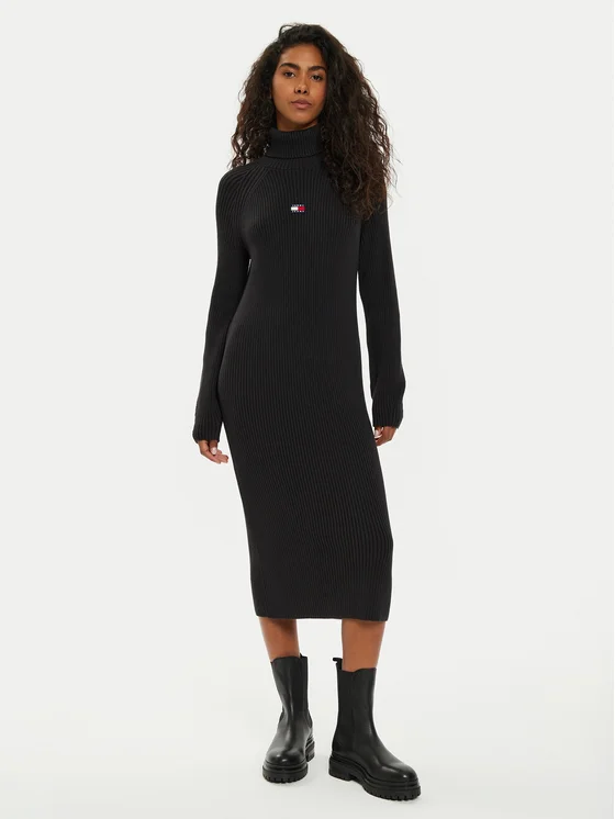 Tommy Jeans Vestito di maglia Tjw Mockneck Badge DW0DW19815 Nero Regular Fit