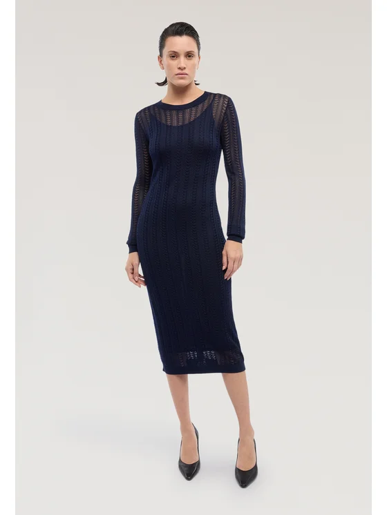 Punto effetto pizzo con abbottonatura sul retro; Dotato di sottoveste; Lunghezza midi