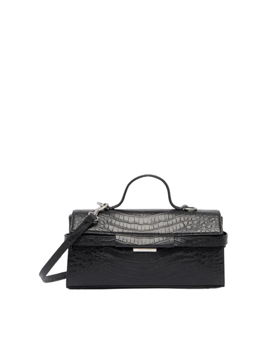 Realizzata in vera pelle stampa coccodrillo; Chiusura logata Trussardi in galvanica argento opaco; Tracolla regolabile e amovibile; Dimensioni in cm: 28 x 16 x 8