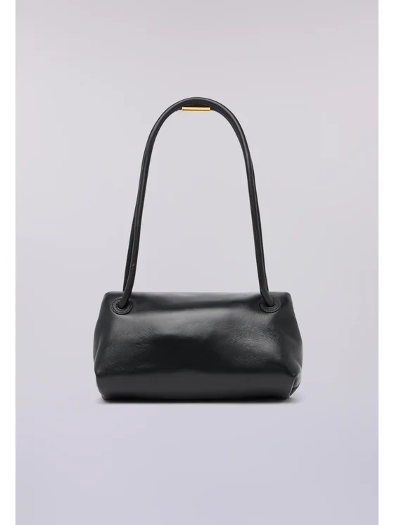 Realizzata in vera pelle; Borsa a tracolla mini linea Orbita; Elemento gioiello oro sulla tracolla con scritta Trussardi; Dimensioni in cm: 23 x 13 x 9