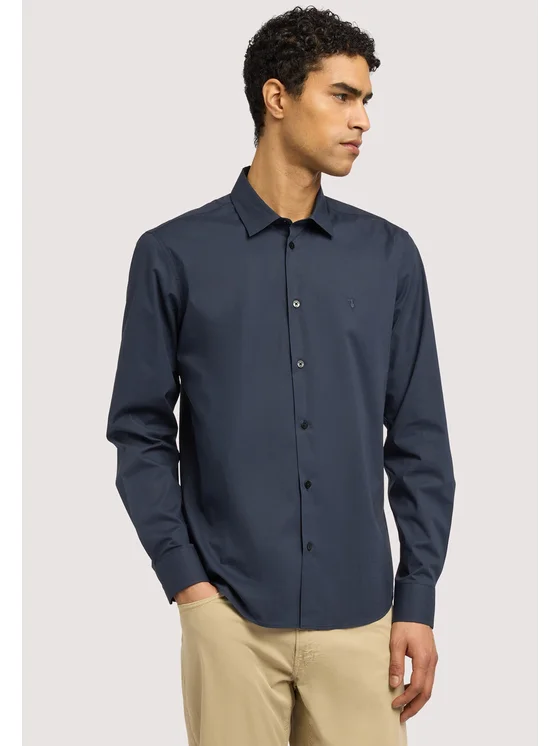 Popeline stretch; Slim fit con pinces laterali sul retro; Ricamo levriero Trussardi sul punto cuore; Collo classico