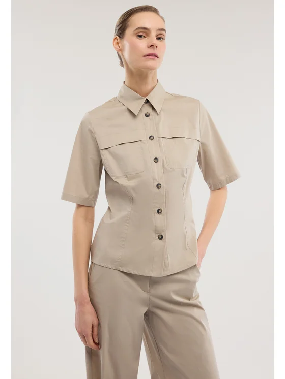 Tessuto principale in cotone con elastan; Tasche applicate sul davanti; Chiusura frontale con bottoni