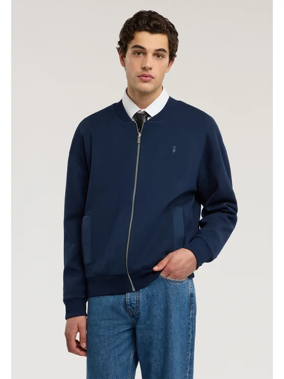Realizzato in maglia di cotone a punto stoffa; Bomber reversibile con chiusura zip frontale; Tasche laterali; Vestibilità regular