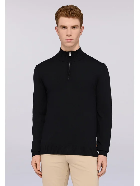 Realizzato in pura lana, finezza 12; Chiusura con zip a metà lunghezza; Collo alto a costine; Vestibilità regular