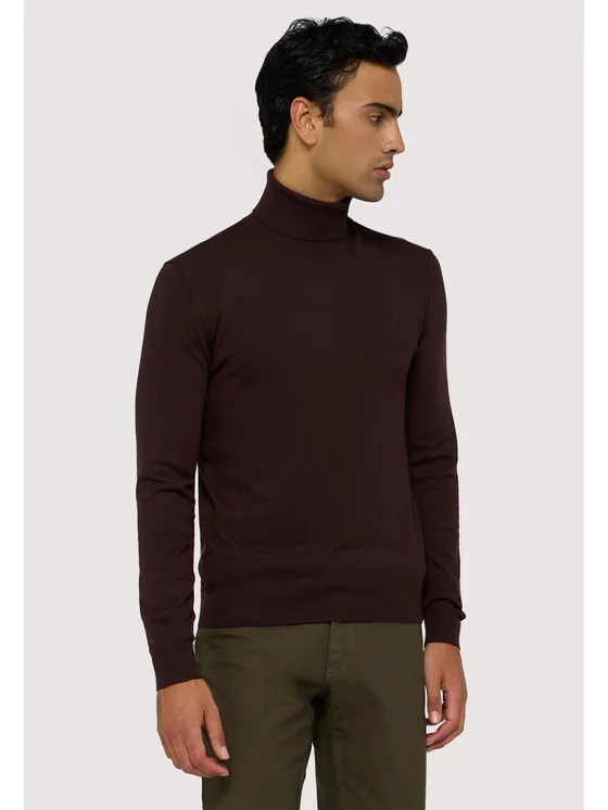 Viscosa rasata finezza 14; Collo alto; Ricamo levriero Trussardi sul punto cuore; Vestibilità slim fit
