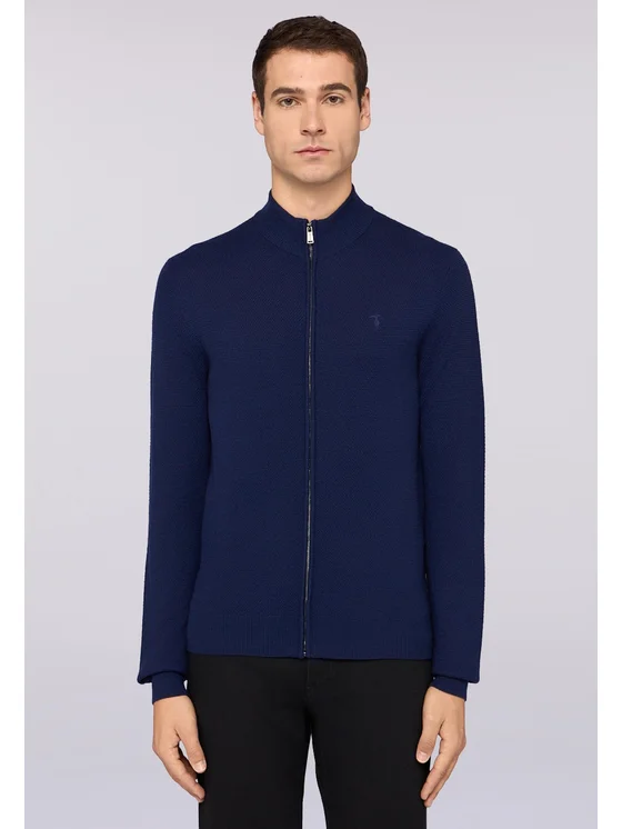 Lana pura finezza 12 lavorata in punto effetto piquet; Chiusura con zip; Ricamo levriero Trussardi sul punto cuore; Vestibilità regular