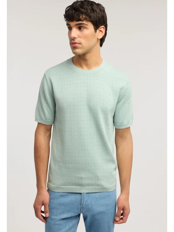 Realizzata in cotone con lavorazione effetto punzonato; Maglia a maniche corte; Ricamo levriero Trussardi sul punto cuore tonale; Vestibilità regular