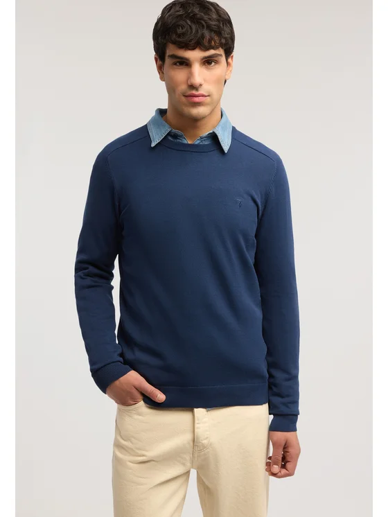 Cotone e lino finezza 14 con aggiunta di seta; Girocollo con manica raglan; Ricamo levriero Trussardi al punto cuore; Vestibilità regular