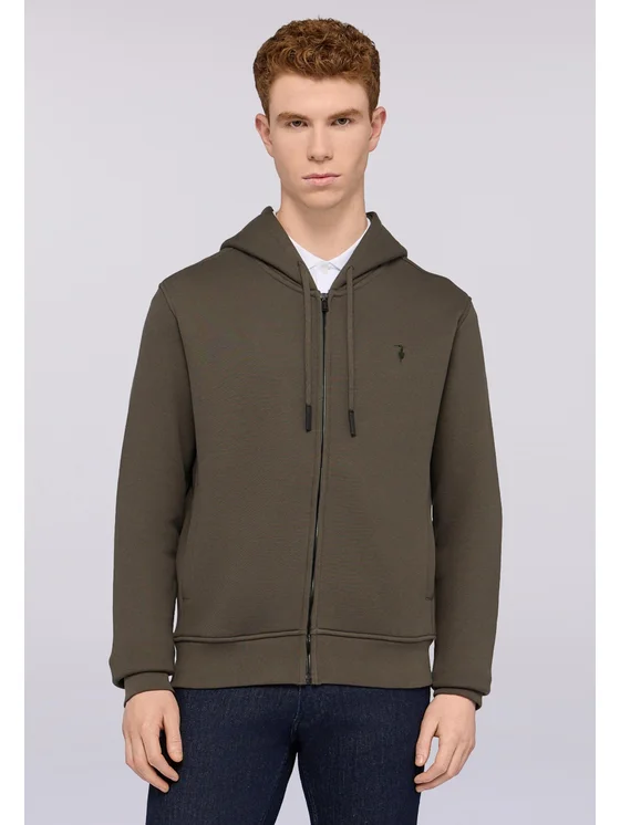Realizzata in felpa diagonale di cotone ; Felpa con zip e cappuccio; Doppia tasca in nylon con bottone automatico; Ricamo levriero Trussardi sul punto cuore