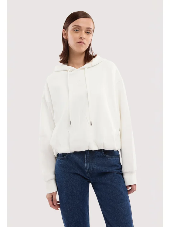 Realizzata in jersey diagonale misto cotone; Cordoncini regolabili; Polsi e orlo elasticizzati
