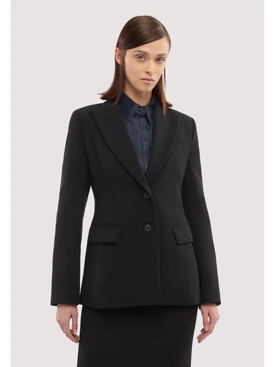 Realizzato in cady stretch; Blazer monopetto con chiusura a due bottoni; Pinces sui fianchi per modellare la silhouette; Fit asciutto