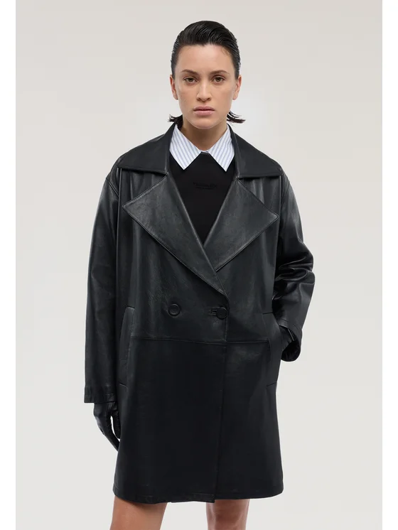 Realizzato in vera pelle metal free; Modello doppiopetto con tasche diagonali; Fodera jacquard Gentle Society; Forma ad uovo