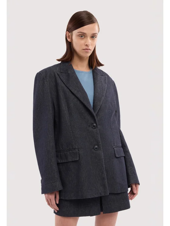 Realizzato in denim; Blazer con chiusura a due bottoni; Due tasche frontali applicate; Vestibilità classica