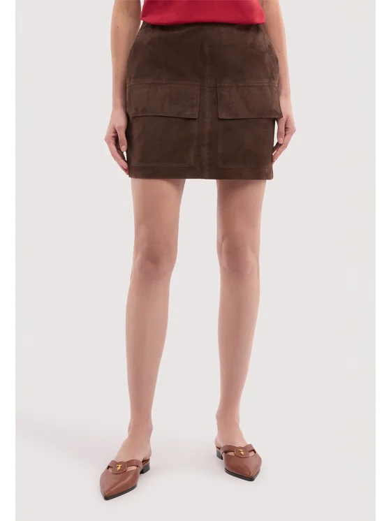 Realizzata in pelle con fodera; Minigonna con vestibilità regular; Due tasche applicate frontali; Chiusura posteriore con zip