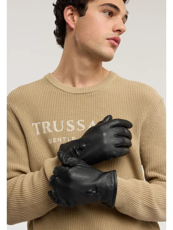 Realizzati in vera nappa con fodera in lana; Levriero Trussardi in rilievo; Chiusura con bottone al polso