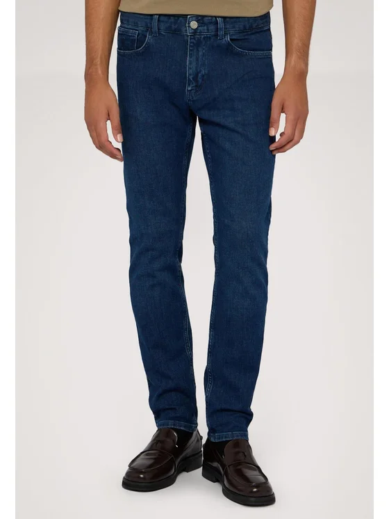 Denim con salpa in pelle e bottoni personalizzati; 1% Elastan per maggiore comfort; Modello con trattamento stonewashed; Modello 370 Close Slim Fit.