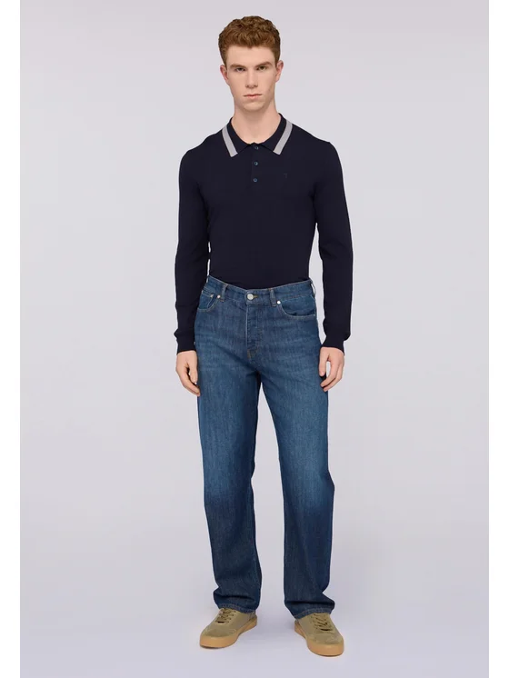 Denim con salpa in pelle; Modello con bottoni; Trattamento stonewashed; Modello 390 Straight Fit.