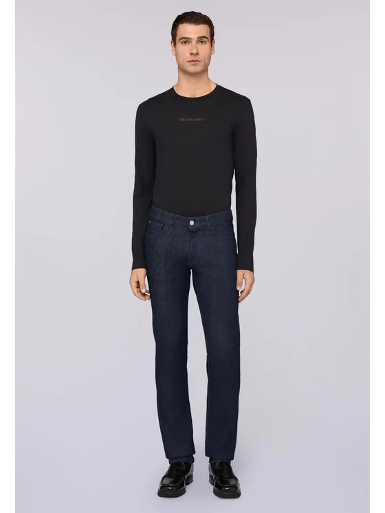 Denim blu rinse con salpa in pelle; 1% Elastan per maggiore comfort; Ricamo sul quinto taschino; Modello 370 Close Slim Fit