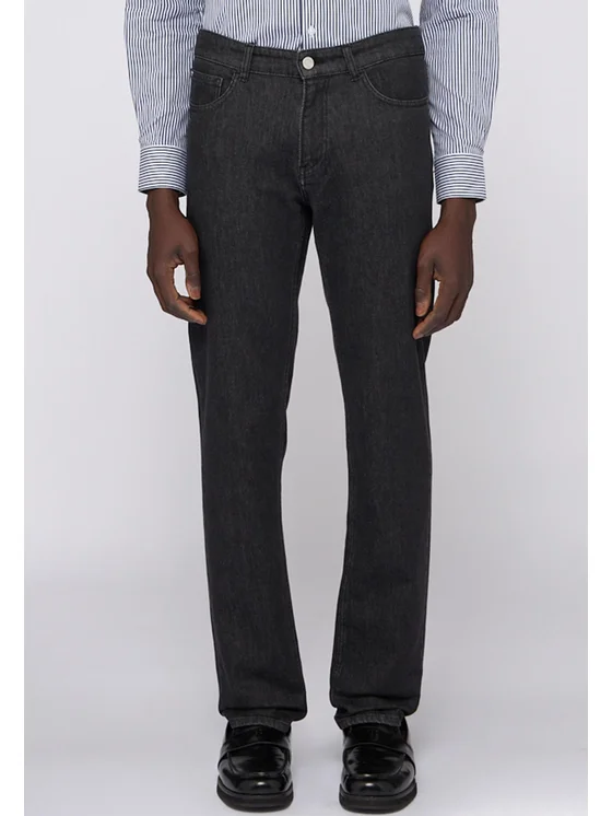 Denim stonewashed con salpa in pelle; 1% Elastan per maggiore comfort; Trattamento stone washed; Modello 370 Close Slim Fit