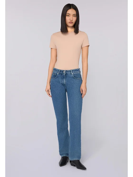 Denim stonewashed con salpa in pelle; Modello con bottone e zip; Modello 5 tasche; Modello 190 Straight Fit