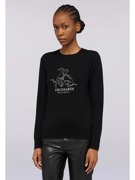 Misto lana finezza 12; Vestibilità regular; Ricamo Gentle Society sul davanti; Girocollo a costine