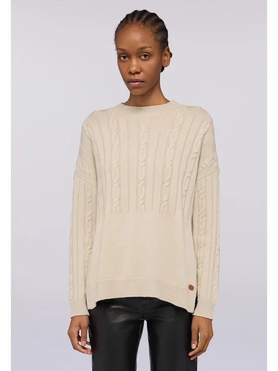 Realizzato con lavorazione a trecce e rasata; Vestibilità comoda; Spacchi laterali; Mix di punti su tutta la superficie