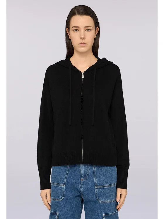 Maglia in filato misto lana, finezza 7; Chiusura con zip e cappuccio; Tasche laterali; Vestibilità comoda