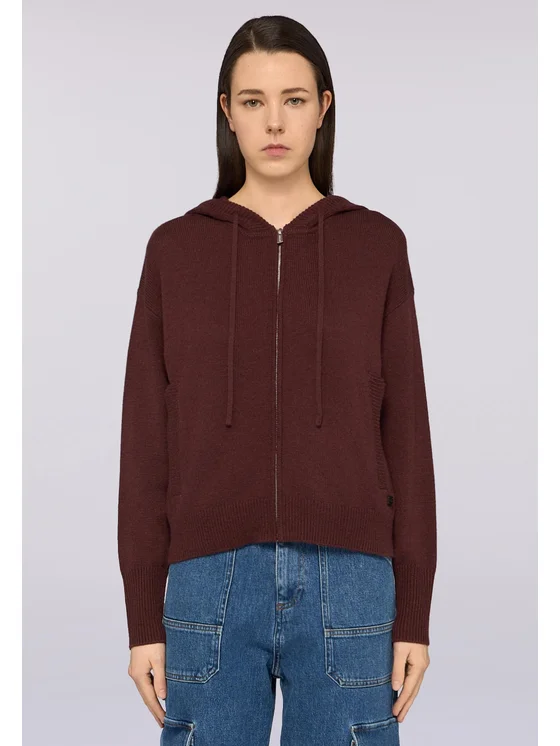 Maglia in filato misto lana, finezza 7; Chiusura con zip e cappuccio; Tasche laterali; Vestibilità comoda