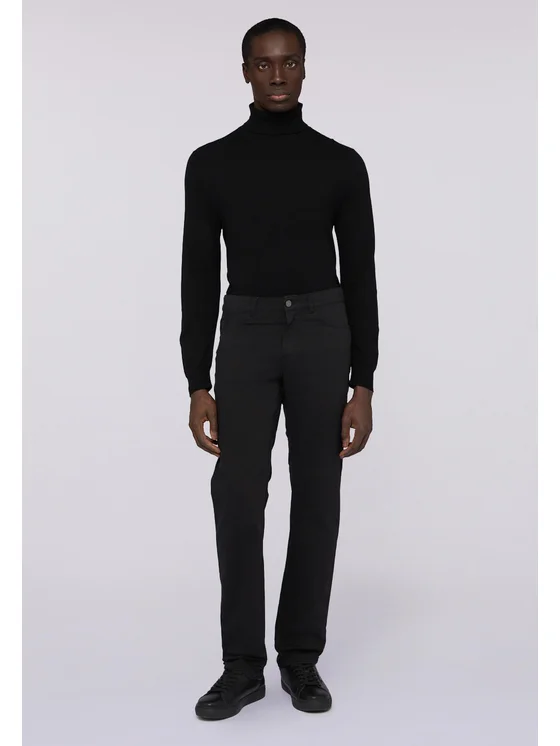 Realizzati in gabardina stretch; Modello con salpa in pelle; Modello 370 Close Slim Fit; Tinto in capo