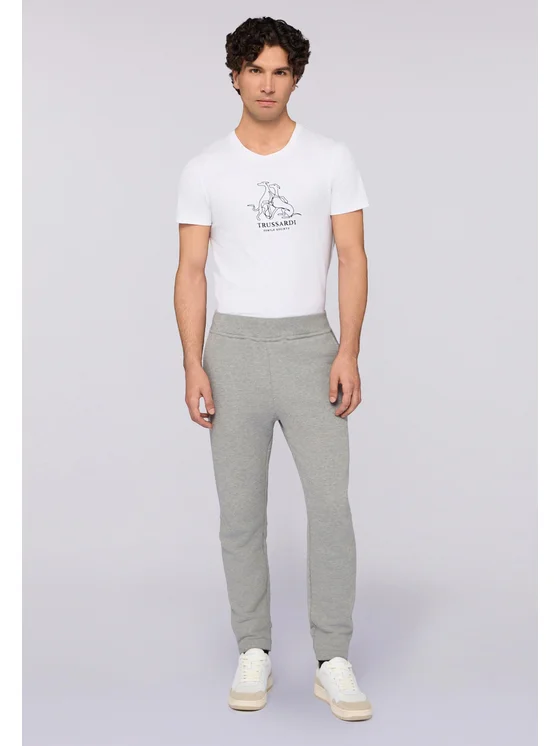 Realizzata in felpa diagonale di cotone; Vita elasticizzata con coulisse; Tasche laterali con inserto in contrasto e bottone; Regular fit