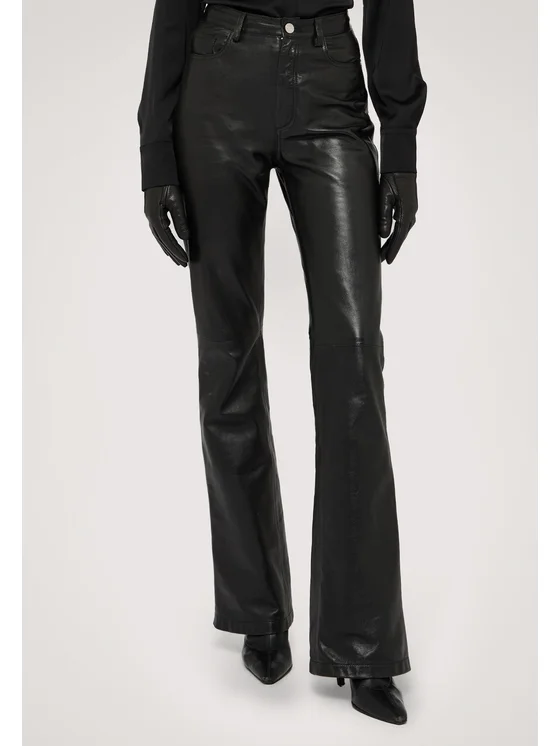 Pantaloni di pelle P324A002272N033 Nero Flare Fit