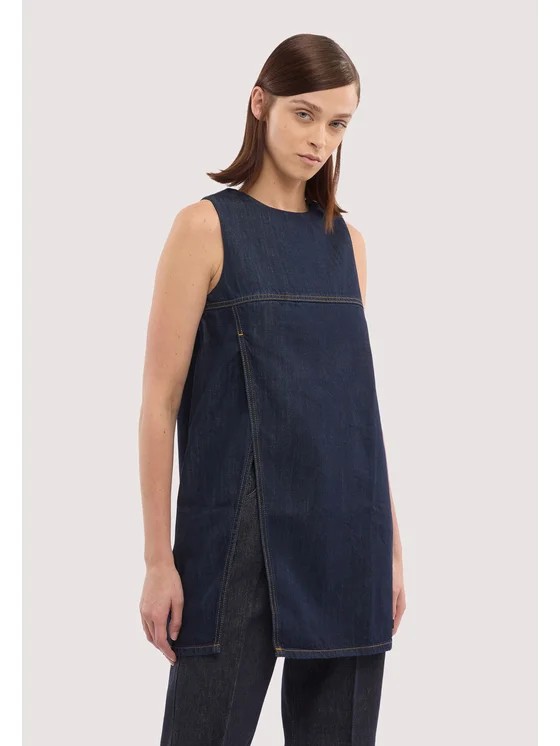 Tessuto denim; Spacco laterale con cuciture a contrasto; Fodera interna
