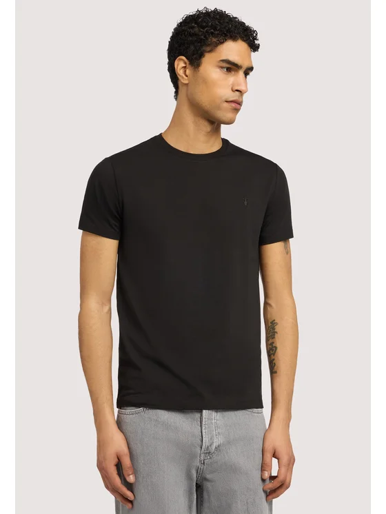 Jersey di cotone elasticizzato; Vestibilità slim fit; Girocollo; Ricamo levriero Trussardi sul punto cuore