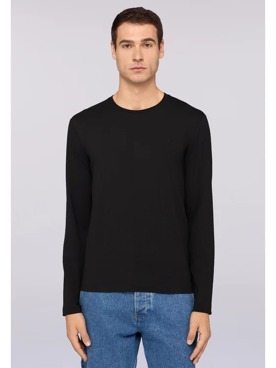 Jersey di cotone elasticizzato; Vestibilità slim fit; Ricamo levriero Trussardi sul punto cuore; Girocollo e maniche lunghe