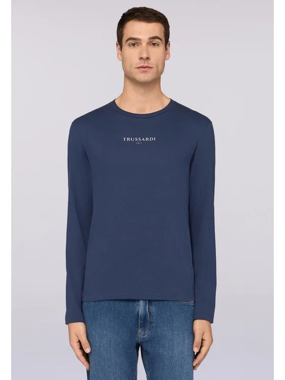 Jersey di cotone; Regular fit; Stampa del levriero Trussardi sul fronte; Girocollo e maniche lunghe