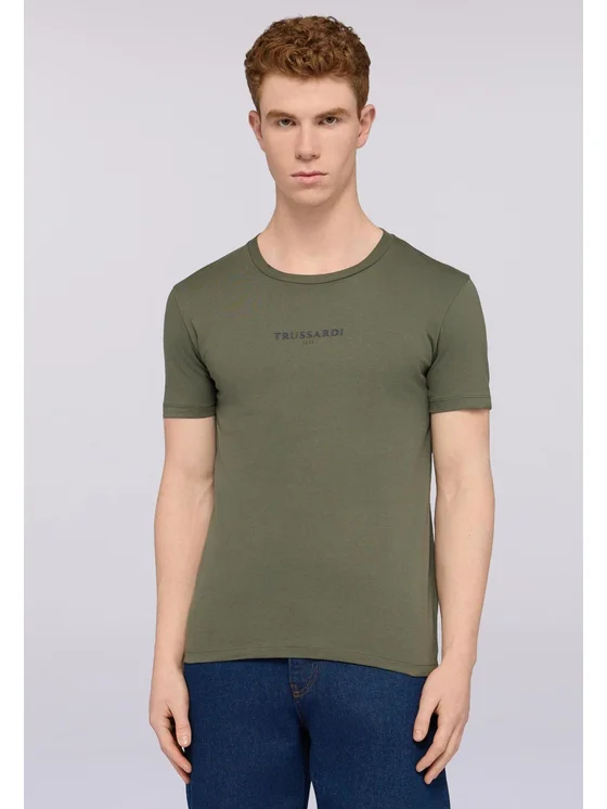 Jersey di cotone; T-shirt regular fit; Stampa spessorata Trussardi sul davanti; Girocollo e maniche corte