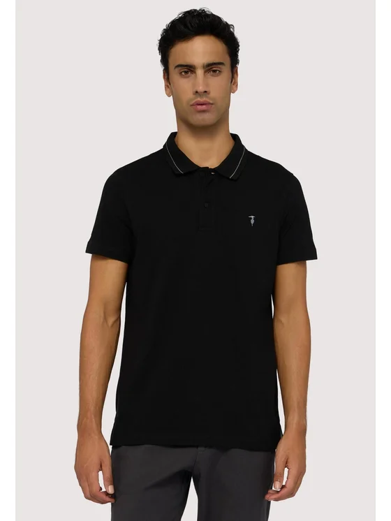 Realizzata in piquet di cotone; Vestibilità regular fit; Colletto con riga a contrasto; Ricamo levriero Trussardi sul punto cuore a contrasto