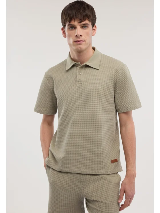 Jersey di cotone effetto waffle; Polo a maniche corte con chiusura a bottoni; Colletto classico e spacchetti laterali
