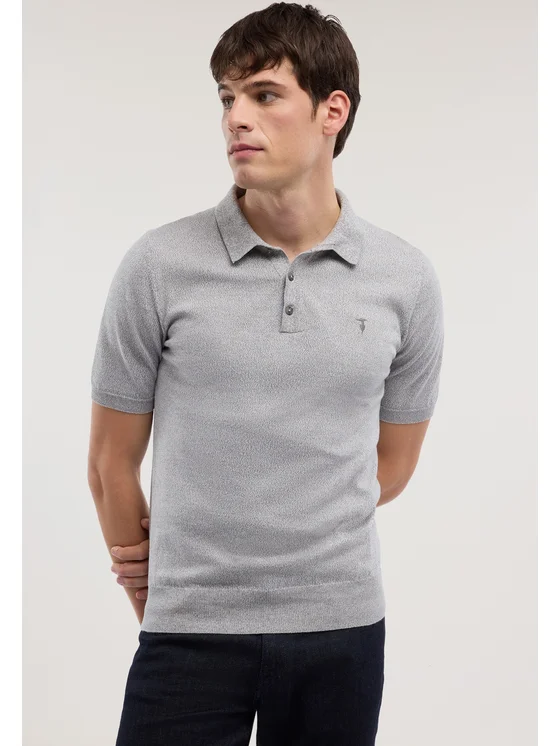 Cotone mouliné finezza 12; Polo a manica corta con chiusura a bottoni; Ricamo levriero Trussardi sul punto cuore; Vestibilità regular