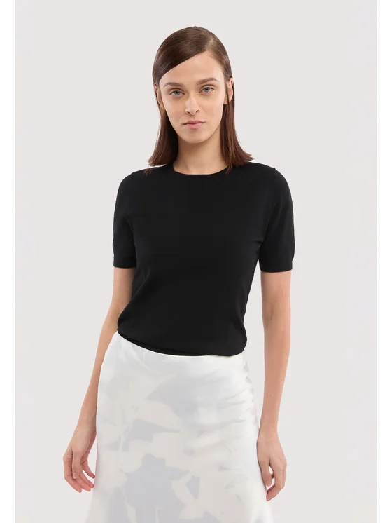 Viscosa rasata finezza 14; Maglia a manica corta; Ricamo levriero Trussardi al punto cuore