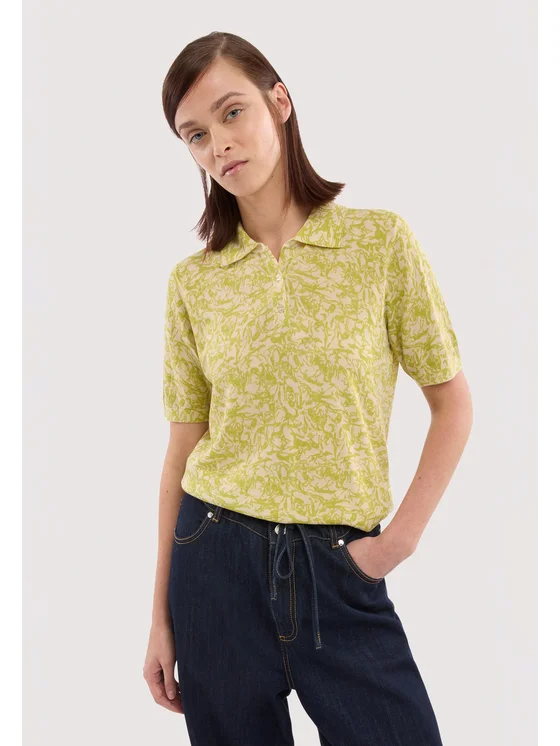 Realizzata in filato di lyocell, cotone e seta; Polo con chiusura a bottoni; Stampa grafica esclusiva con levriero Trussardi allover; Vestibilità regular