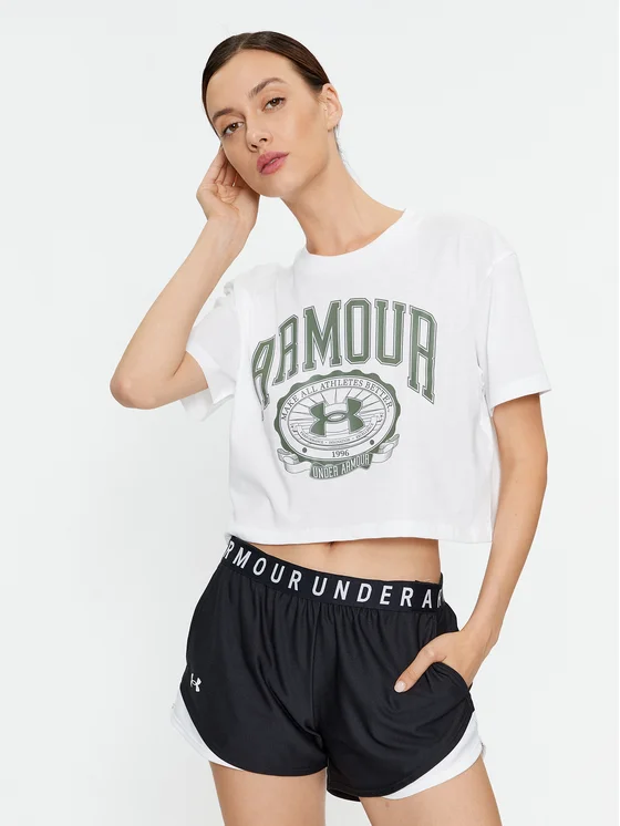 Under Armour T-shirt Ua Collegiate Crest Crop Ss 1379402 Bianco Loose Fit