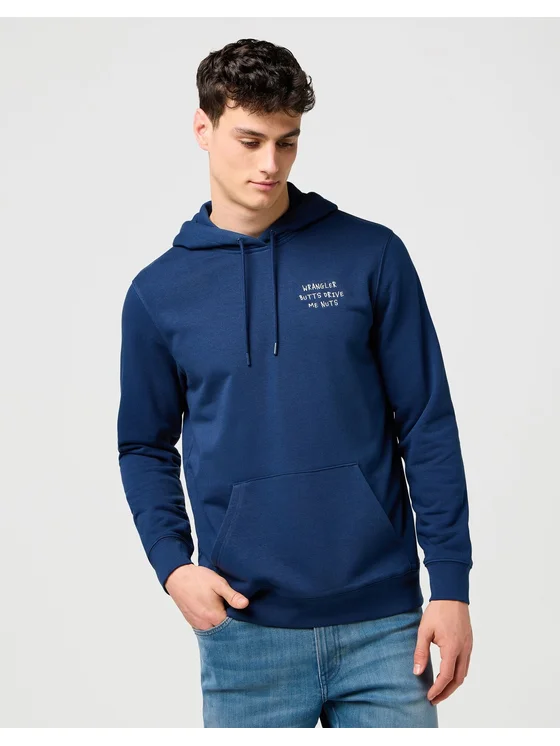Wrangler Felpa EMBROIDERY HOODIE Blu Relaxed Fit